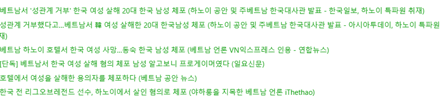2024년 6월 1일, 베트남 경찰은 호텔에서 한국인 여성 1명을 살해한 혐의로 한국인 남성 1명을 체포했다고 발표했습니다.